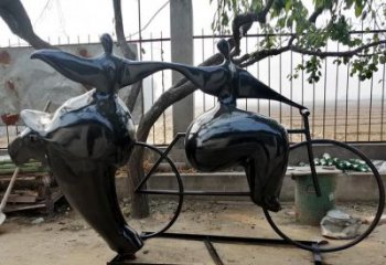 戶外創意騎自行車雕塑