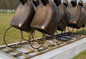 仿銅騎自行車抽象人物玻璃鋼雕塑