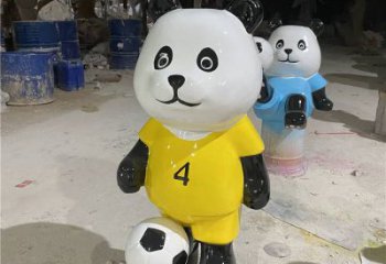 可愛熊貓雕塑,擺放玻璃鋼足球,為庭院添彩
