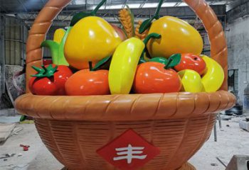 大型彩繪玻璃鋼水果籃雕塑