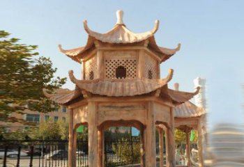 涼亭,常建在花園或公園中的開(kāi)敞的納涼亭雕塑,常由柱子支承屋頂建造。唐杜牧《醉倒》詩(shī):景觀涼亭雕塑晴空樂(lè)下仙云,俱在涼亭送使君。明陸采《明珠記由房》:炎威,炙損嬌姿,怎如和我涼亭共戲,醉荷風(fēng)景觀涼亭雕塑相依。夏衍《秋瑾傳》序幕:右手是涼亭的一半,農(nóng)村中式?jīng)鐾さ袼苁且粭l破碎殘敗了的石板路。