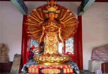 鎏金千手觀音大型雕塑,源自古老的佛教傳統,象征著慈悲、智慧和力量,是一件精美絕倫的藝術品,可以在寺廟、景區等場所裝飾,也可以收藏在家中,令人醉心。